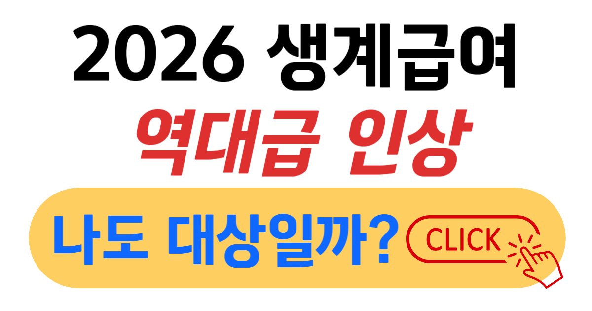 역대급 중위소득 결정으로 2026년 생계급여 인상 폭이 그 어느 때보다 큽니다! 이제 4인 가구라면 매달 200만 원 이상의 지원금을 받을 수 있는 시대가 열렸습니다. 이번 글에서 천천히 확인하셔도 좋고요, 내가 완화된 신청 자격에 해당되는지, 그리고 이번 인상으로 내 통장에 입금될 수령액이 얼마인지 빠르게 알아보고 싶으시다면 지금 바로 아래 이미지와 버튼을 클릭해 즉시 확인해 보세요!